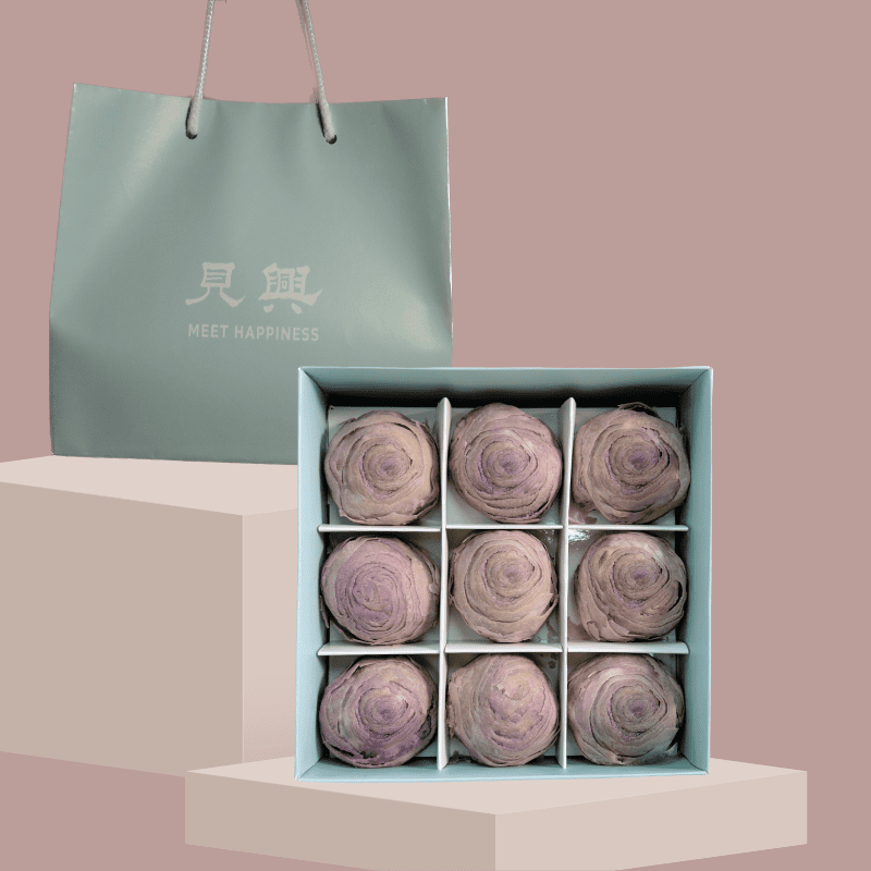 而說到中秋必備的創新風味,【芋頭Q麻糬月餅】絕對榜上有名。榮獲「113 年台灣百大糕餅伴手禮」,它以低糖綿密芋頭餡結合日本麻糬,咬下去時,酥香與 Q 彈在口中交錯,層次分明又毫不衝突。更令人感動的是,每一盒禮盒裡還附上一張手寫明信片,讓月餅不僅是一份甜點,更是一份專屬的祝福。